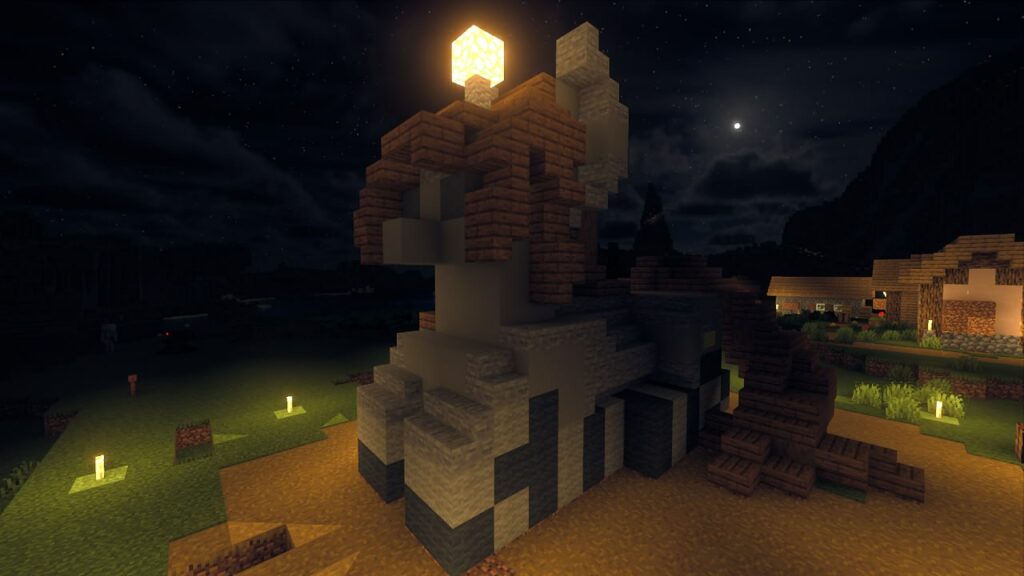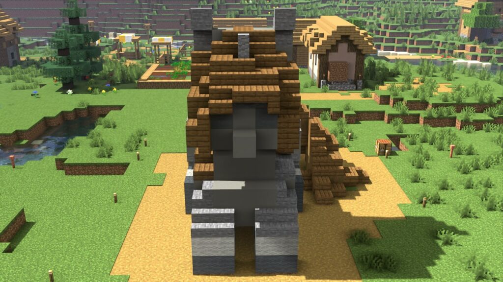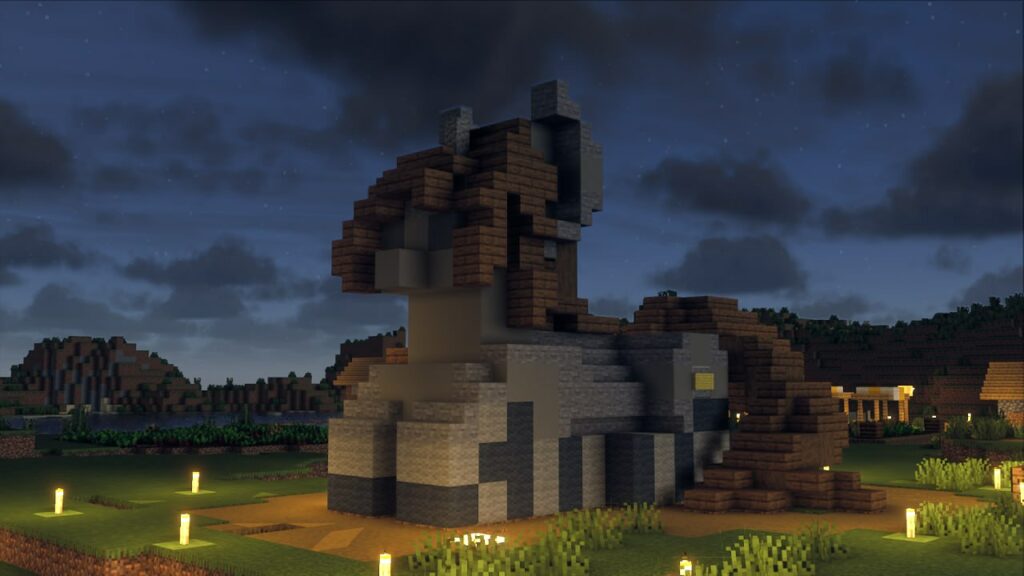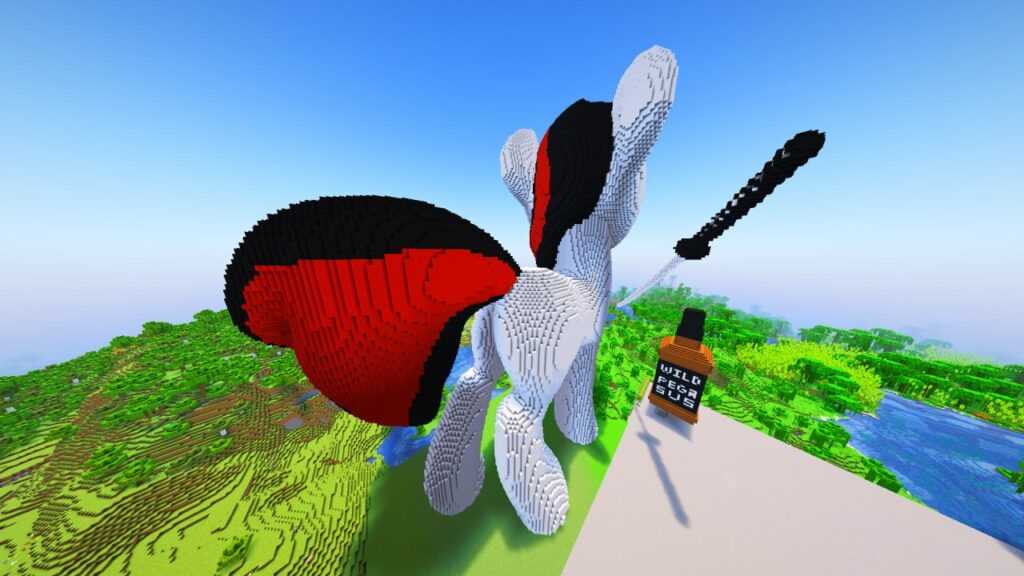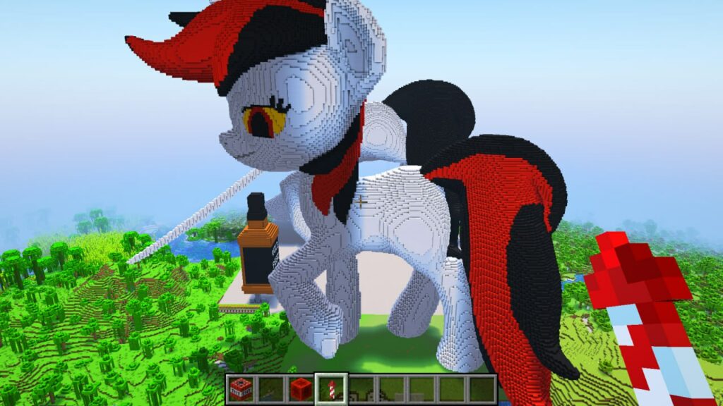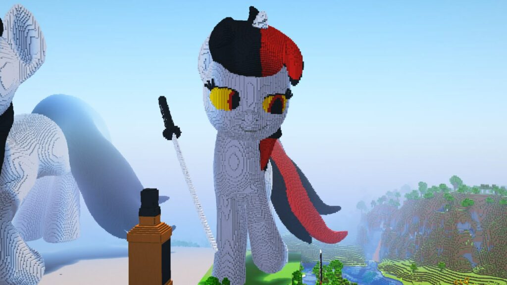 Да, это Литл Пип в чулочках, вдохновлялся иконкой запуска Remains. Она не smol но и не big. Построил в выживании, материалы: серый бетон, камень, еловая древесина, андезит для рога. Шерсть подарил Oblako. В процессе несколько раз падал. Размер выбрал исходя из опыта постройки похожей постройки на сервере PipbuckStudios. На самом деле я администратор этого конкурса, так что не могу судить сам себя.